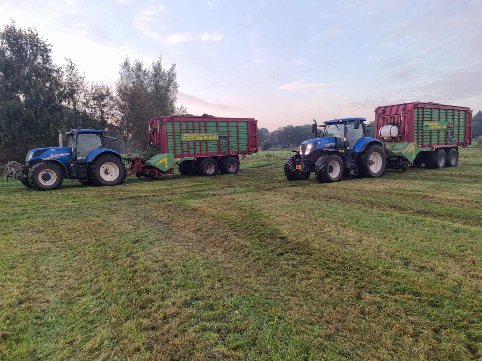 Wij hebben een Claas Jaguar 900, die razendsnel uw gras kan hakselen. Hiermee maken we van uw gras een fijn homogeen product en ervaart u er gemak van bij het voeren. Naast hakselen is er uiteraard ook de mogelijkheid om onze 2 opraapwagens in te zetten om uw gras aan de bult te krijgen. Toevoegmiddel is mogelijk op waterbasis en kunnen wij voor u verzorgen via zowel de hakselaar als op beide opraapwagens.